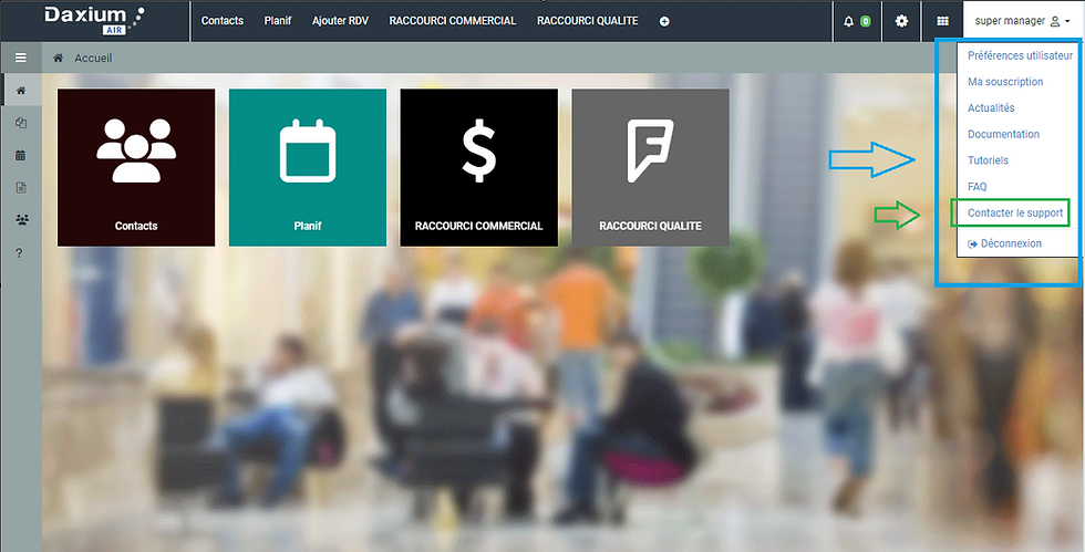 Vous pouvez créer un ticket support lorsque vous êtes sur le portail Daxium-Air...