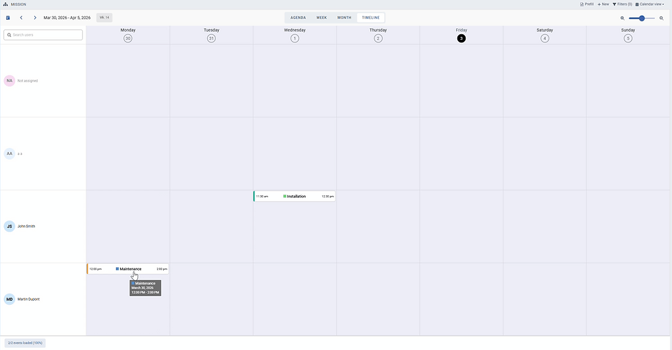 NB: If the field user field you select to act as assignee is restricted to a certain group (on the user field's option), only the users from that group will be displayed in the timeline view