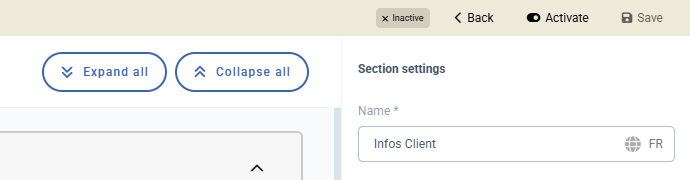 Clicking on a field will display, in addition to the section settings, the settings specific to your fields.